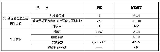 YL 四面复合竖丝岩棉保温板性能指标应符合表2的要求。