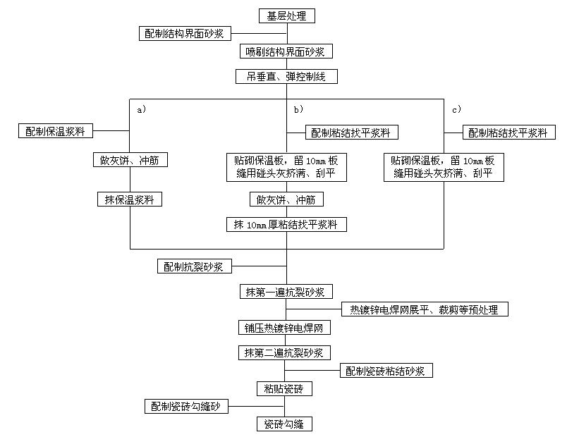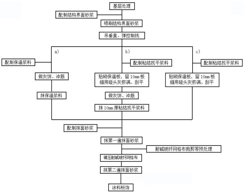 注:a)保温浆料做法;b)贴砌保温板做法;c)贴砌保温板简易做法。
