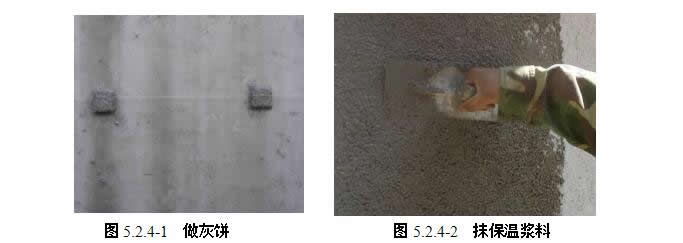 结构界面砂浆基本干燥后即可进行保温浆料的施工(图5.2.4-2)。在施工现场搅拌质量可以通过测量湿表观密度并观察其可操作性、抗滑坠性、膏料状态等方法判断。
