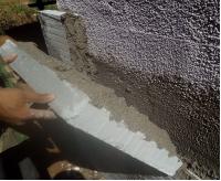 c) 门窗口施工时应先抹门窗侧口、窗台和窗上口,再抹大墙面,施工前应按门窗口的尺寸截好单边八字靠尺,做口应贴尺施工以保证门窗口处方正。