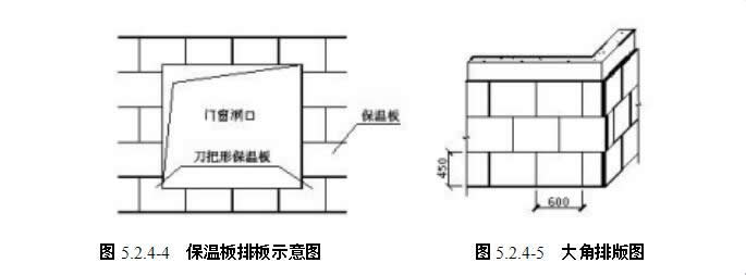 贴砌时应按自下而上、水平方向依次贴砌,上下错缝粘贴,门窗口、墙角处不得贴砌小于标准尺寸1/2的非标准尺寸板,小于标准尺寸1/2的非标准尺寸板应贴砌在窗间墙等次要部位。窗口处的板应裁成刀把形(图5.2.4-4),墙角处贴砌应交错互锁(图5.2.4-5)。