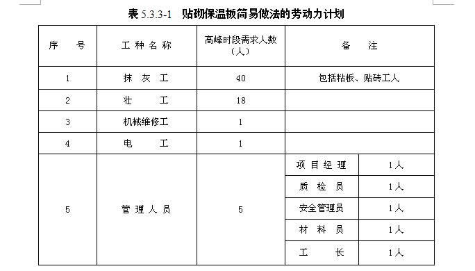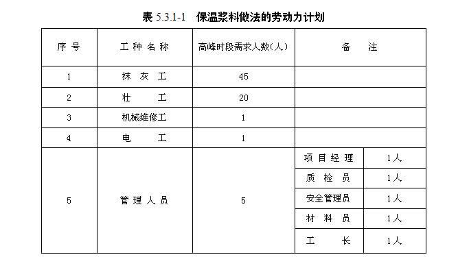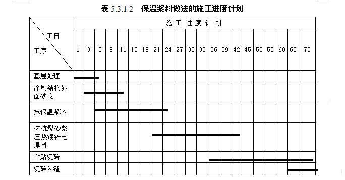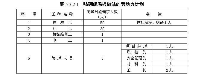 5.3.1  保温浆料做法(按外墙保温面积10000m2、工期90天计算)的劳动力计划见表5.3.1-1,施工进度计划见表