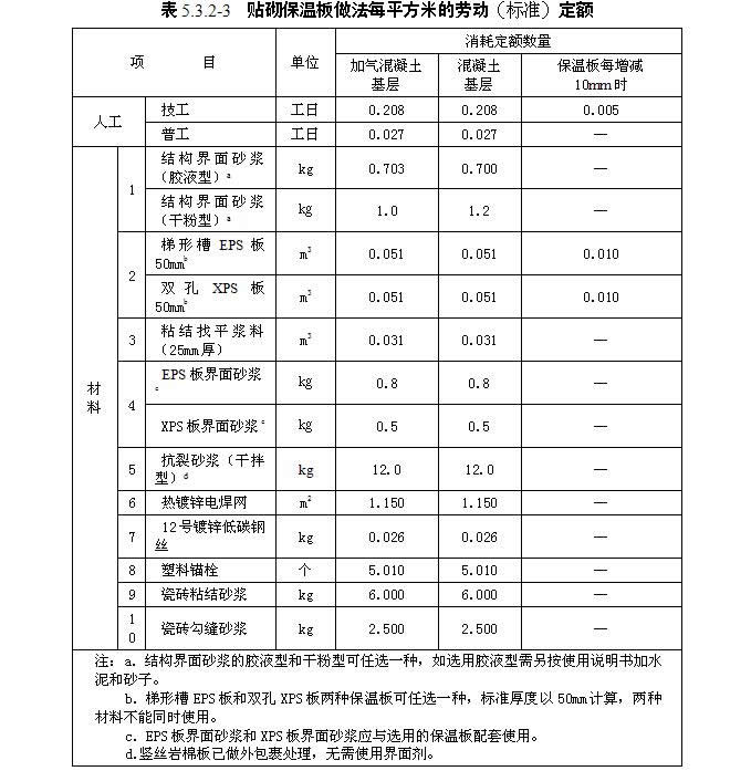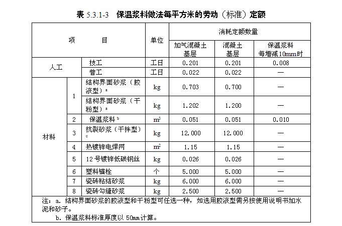 5.3.1-2,每平方米的劳动(标准)定额见表5.3.1-3。