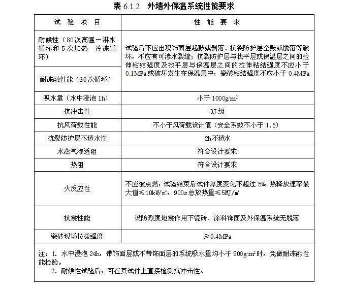 6.1.2  该外墙外保温系统的性能应符合表6.1.2的要求。