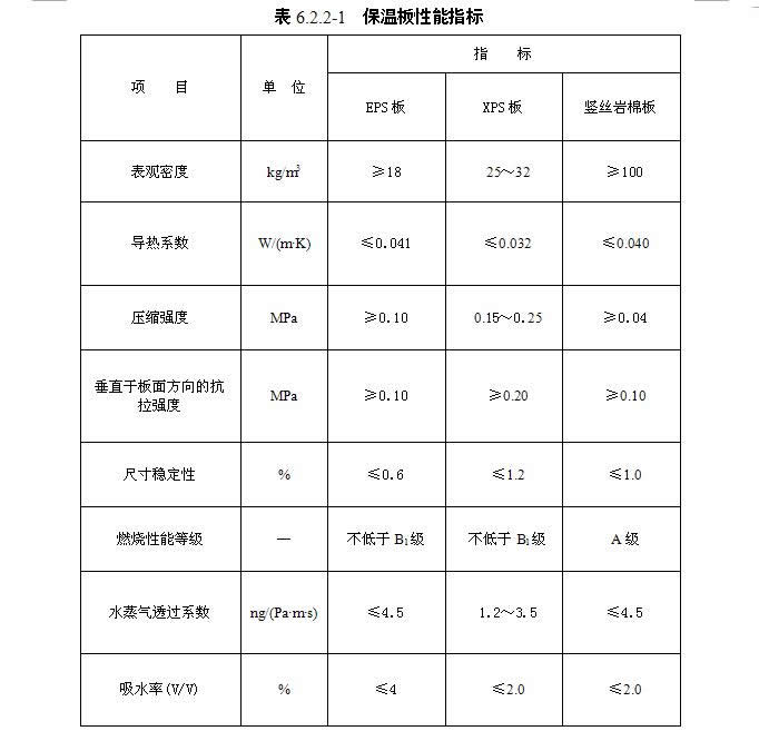 1、保温板的性能指标应符合表6.2.2-1的要求。