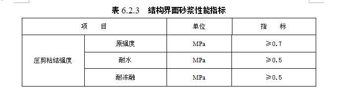 6.2.3  结构界面砂浆性能指标应符合表6.2.3的要求。