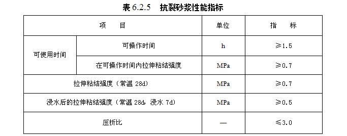 6.2.5  抗裂砂浆的性能指标应符合表6.2.5的要求。