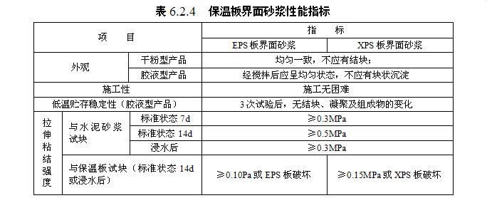 6.2.4  保温板界面砂浆的性能指标应符合表6.2.4的要求。