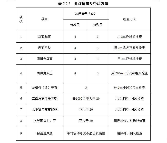 4、外保温墙面层的允许偏差及检验方法应符合表7.2.3的规定。
