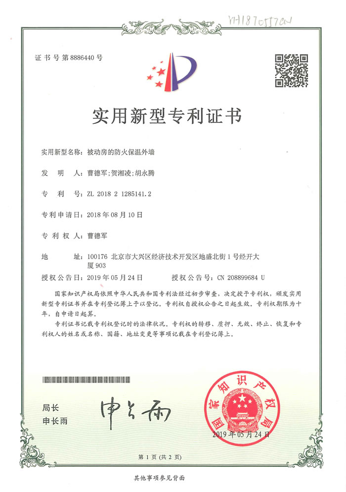 实用新型专利 证书号第8886440号