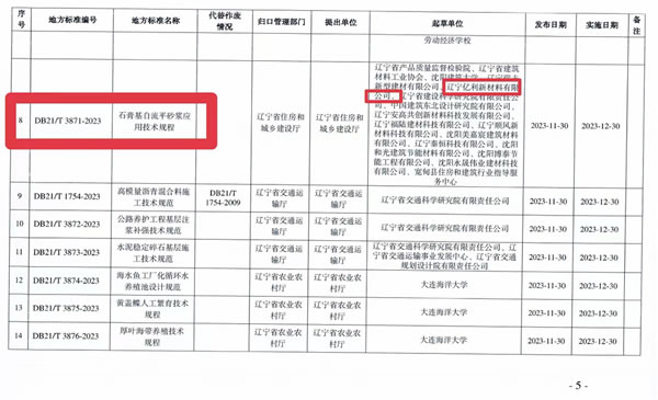 根据辽宁省市场监督管理局通告(2023年第36号),我公司参与起草的《石膏基自流平砂浆应用技术规程》被列入2023年第十一批辽宁省地方标准,地方标准编号为DB21/T 3871-2023,将于2023年12月30日实施?! ?